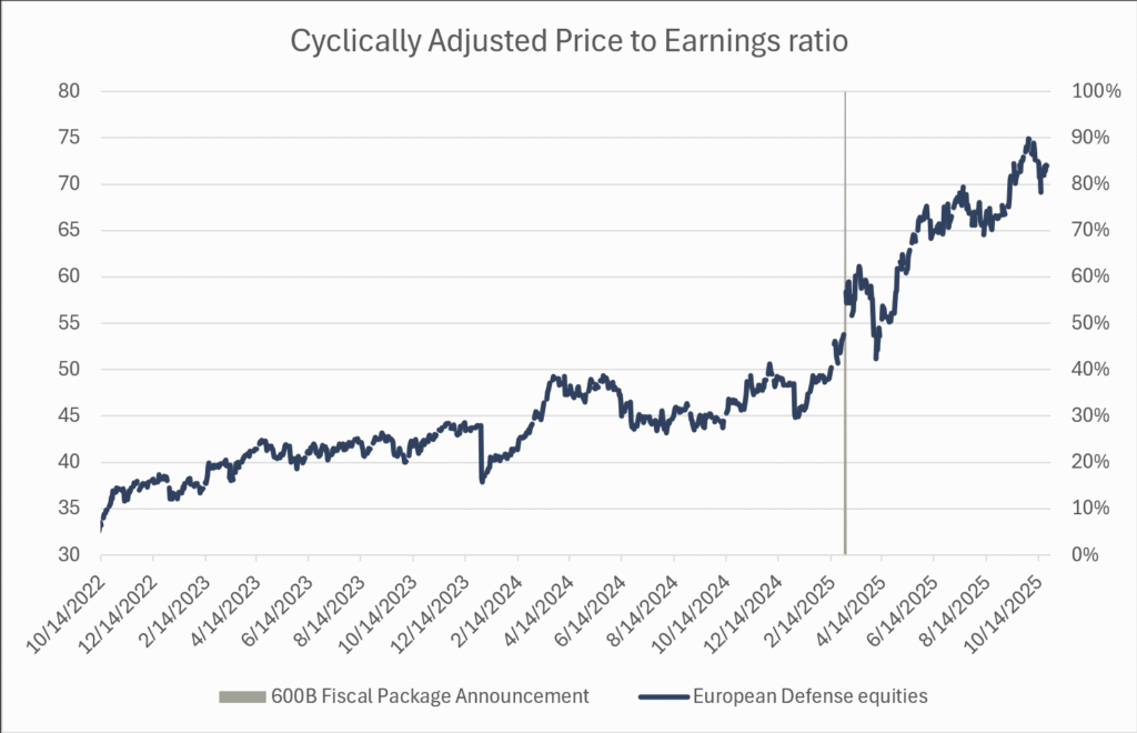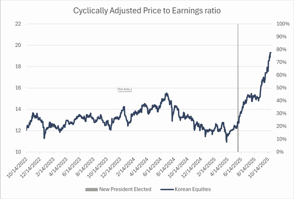 Recent examples illustrate this: Korea’s market surged after an unexpected pro-capitalist government change, while Germany’s value stocks (defence) re-rated following a sudden €600 billion defence stimulus. In both cases, few anticipated the catalysts — yet low starting valuations magnified the upside.